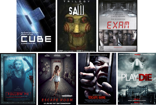 Dans ce même principe, sur les films un peu plus anciens, on peur citer les sagas Cube (que j’adore – 1997) et SAW (que j’adore tout autant – 2004), Exam (2009) .